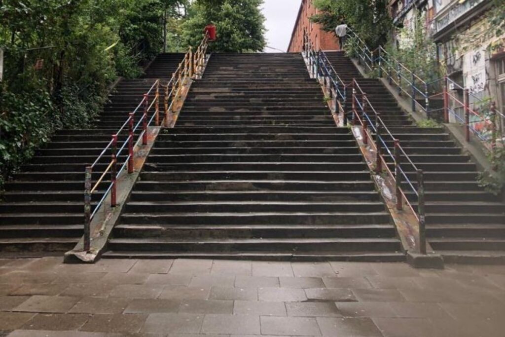 The police classification as a ‘dangerous zone’ or ‘Hamburg’s worst dealer hangout’ is countered by a kaleidoscope of sounds and voices. Interviews with users and neighbours of the staircase are transformed into songs and tracks that ask what dangers this supposedly dangerous place actually harbours and what the decades of struggles and conflicts surrounding the staircase are really about.