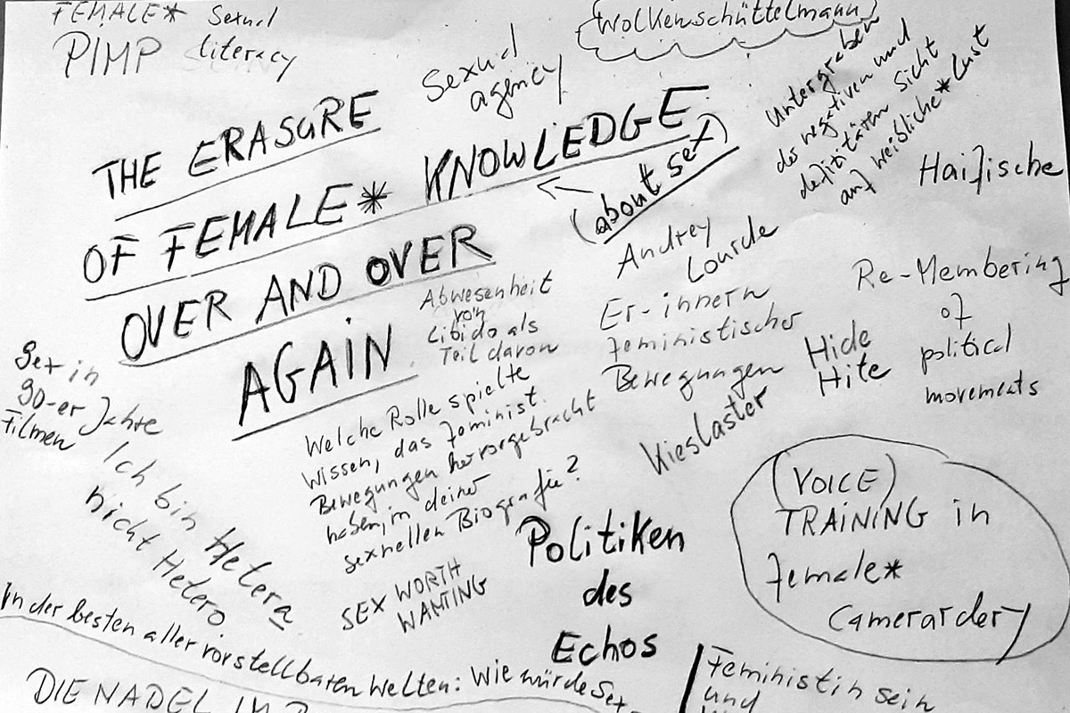 Ich interviewe Frauen*, die über patriarchale Zurichtungen ihrer Lust und ihres Körpergefühls genauso etwas zu sagen wissen – wie über sexuelle Emanzipation. Eine Kombination aus Interview-Recherche und davon ausgehenden performativen und musikalischen Experimenten wird Basis zukünftiger Konzert-Performances. (Der Stern hinter Frauen* bezeichnet, dass hier alle Personen gemeint sind, die sich als Frauen definieren.)