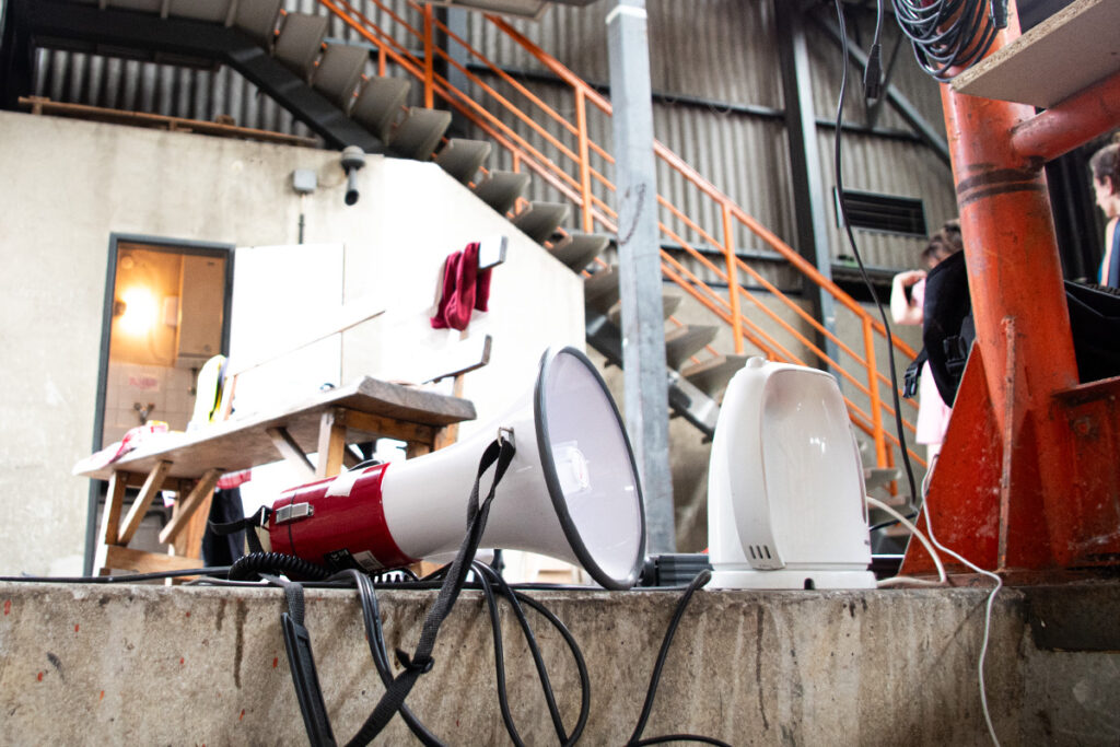 RIOTOUS ist der Name für ein wanderndes und wachsendes, langfristiges und partizipatives Projekt, das experimentelle Chorpraktiken mit Live Art verbindet. Mit roher DIY und Postpunk – Attitude werden Körper, Megafone, Mikrofone, Lautsprecher, Schlagzeug-Elemente, Drum-Computer, Beton und umgebende Architektur zu Instrumenten eines “drum and voice” Projektes, das stimmliche Grenzen ausweitet, Stimmen (ver-)sammelt, Stimmen verstärkt.